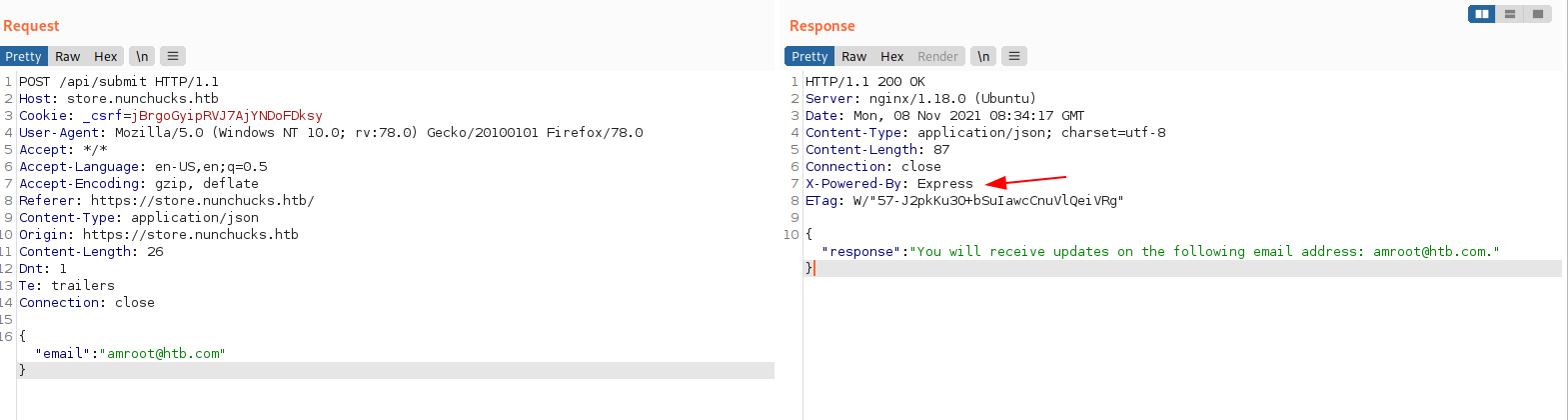 At the bottom of https://nunchucks.htb page was Store: Coming soon was written. It was hint for Vhost as well.
